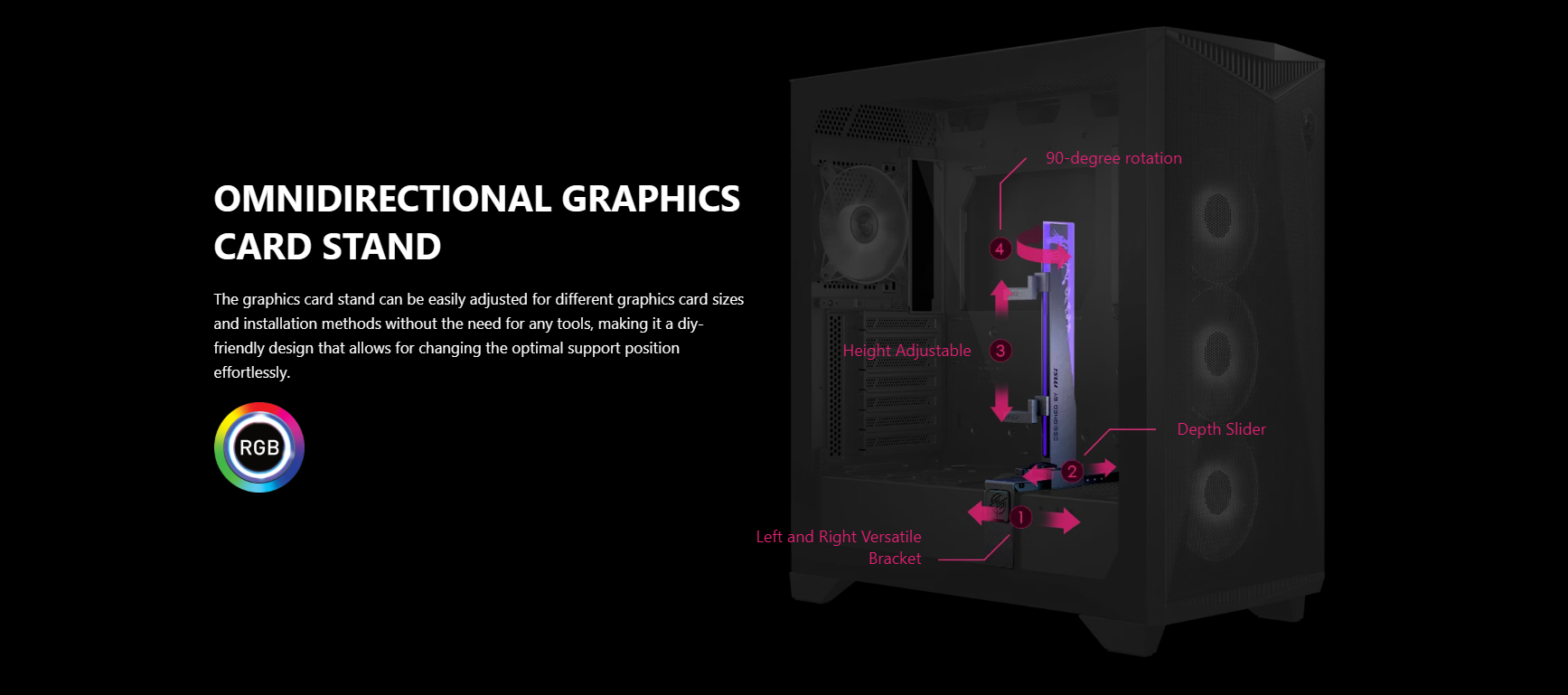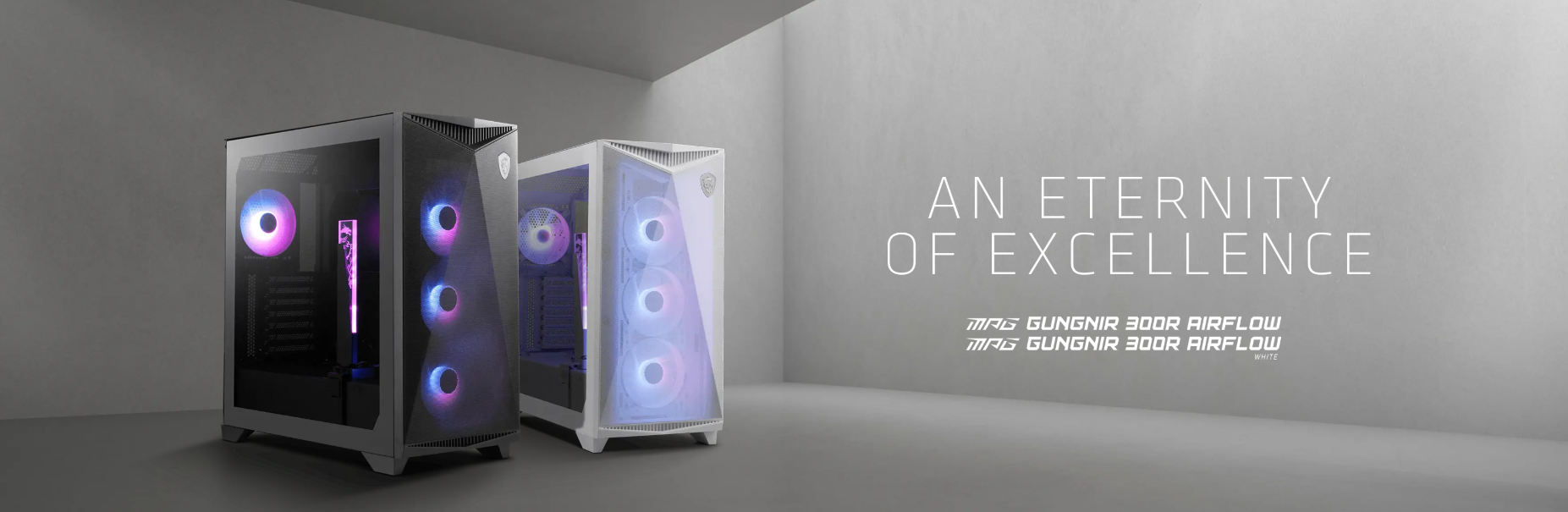 Step up your gaming setup with the MSI MPG GUNGNIR 300R AIRFLOW series (Black / White) – a mid-tower case crafted for maximum cooling, premium ARGB lighting, and DIY-friendly design. Perfect for gamers and creators who demand performance without compromise.