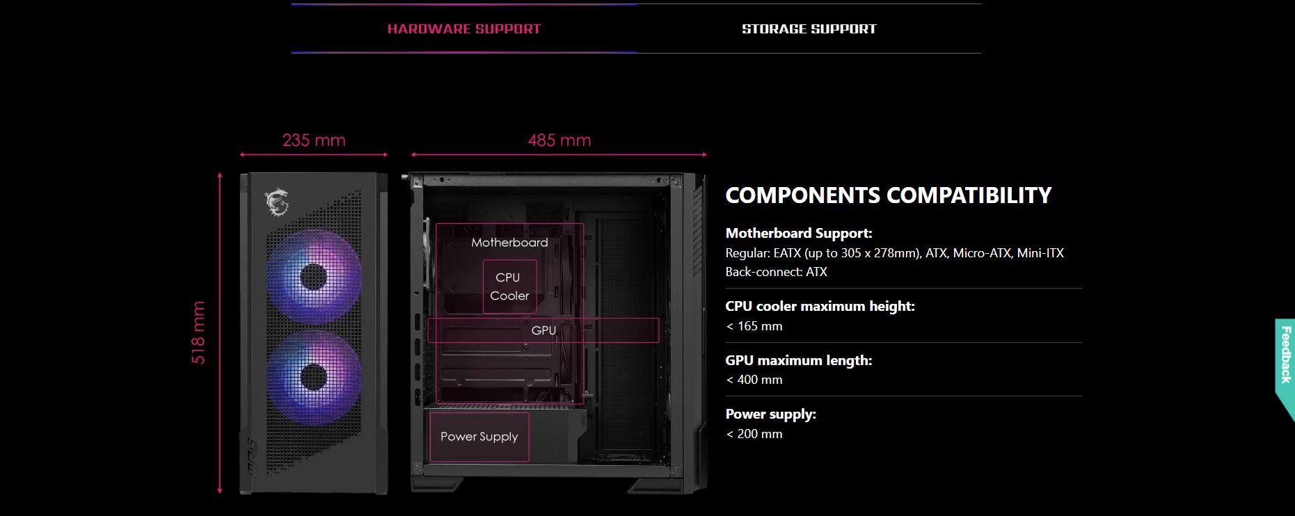 * Maximum PSU Length: 200 mm / 7.87 inches