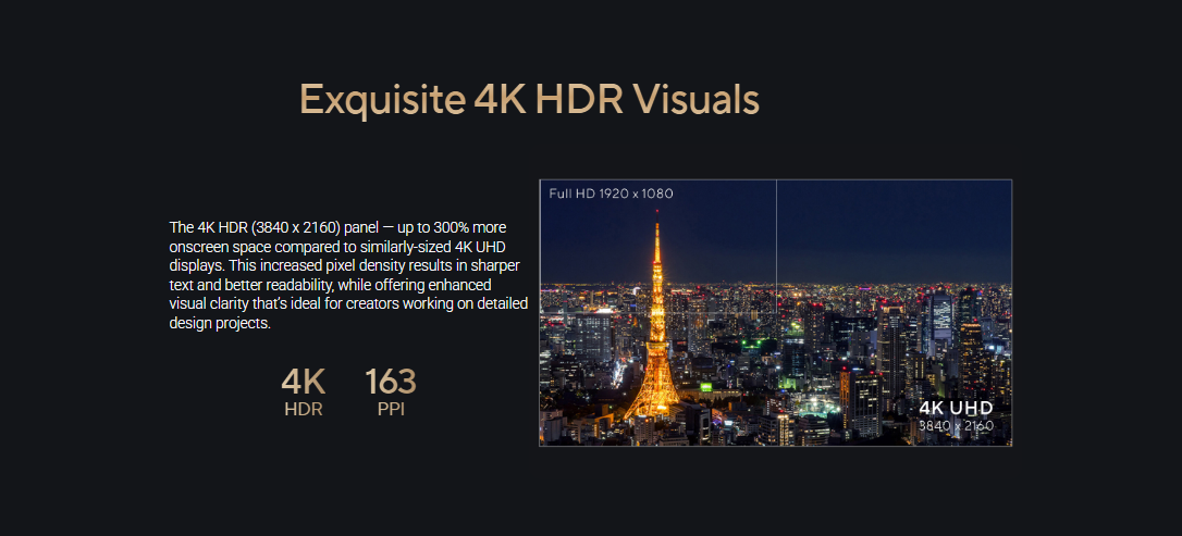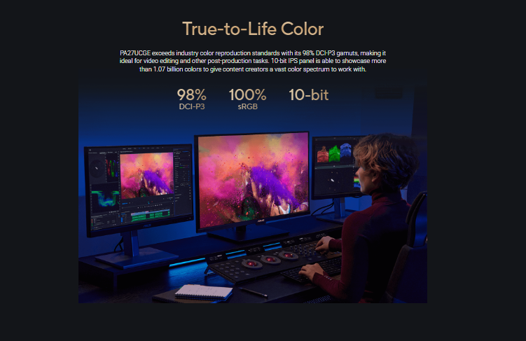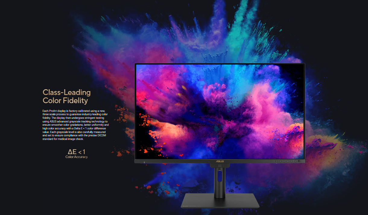 - Wide 98% DCI-P3 and 100% sRGB gamut to meet international color standards along with industry-leading Delta E < 1 color accuracy