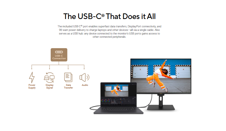 - Extensive connectivity including DisplayPort™ over USB-C® with 96-watt Power Delivery, DisplayPort™, HDMI® and USB hub