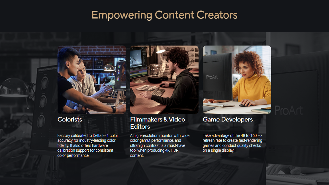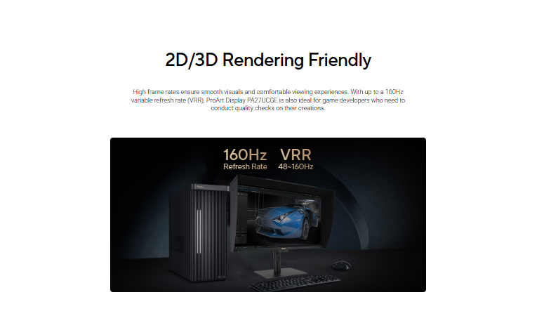 - 160Hz variable refresh rate (VRR), providing creators smooth fast-rendering and comfortable viewing experience