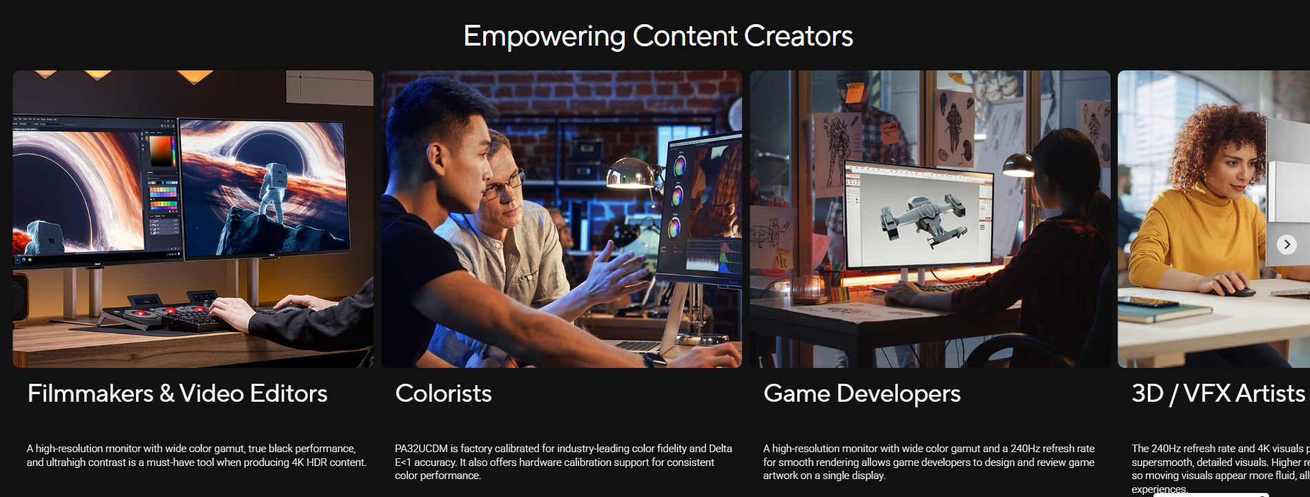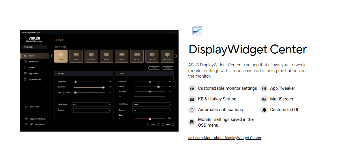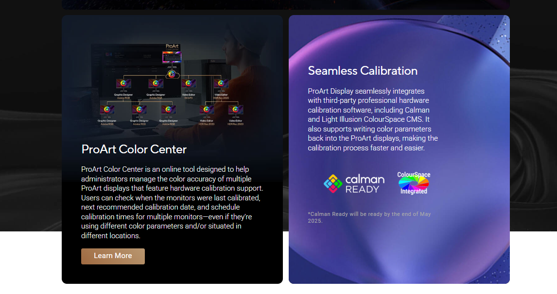- World-leading ∆E < 1 color performance and ASUS ProArt Hardware Calibration Technology for color-accuracy optimization and color profile write-back