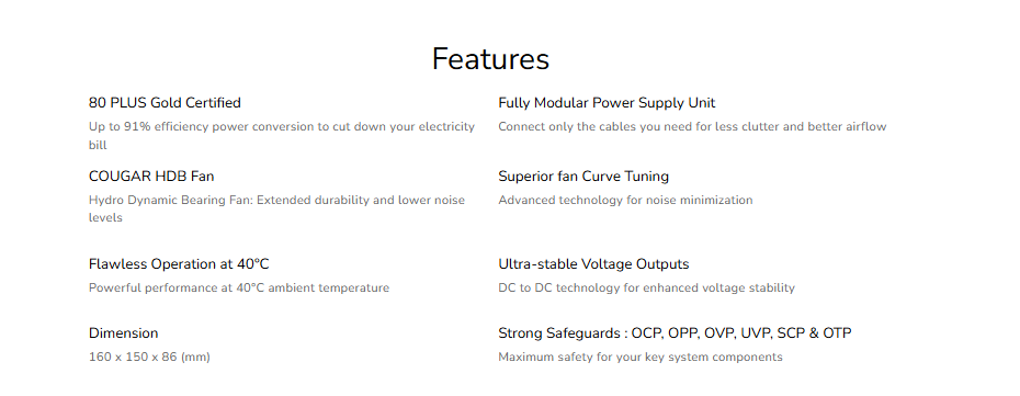 Product Name: Cougar GEX 750W 80 Plus Gold Fully Modular Power Supply Unit (PSU-CGR-GEX750) | itw