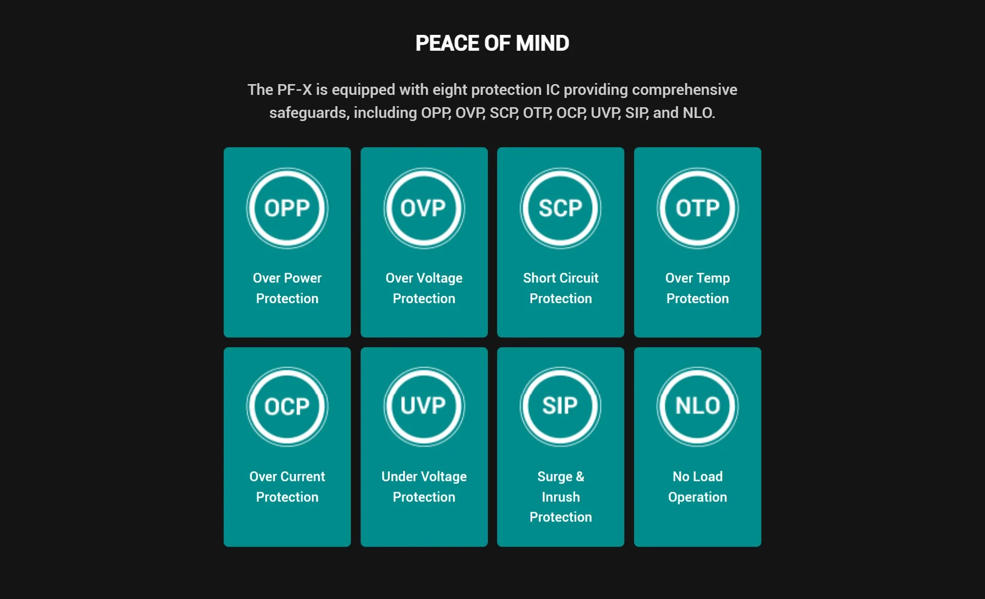 Protection: OPP/OVP/OCP/SCP/OTP/UVP/SIP/NLO