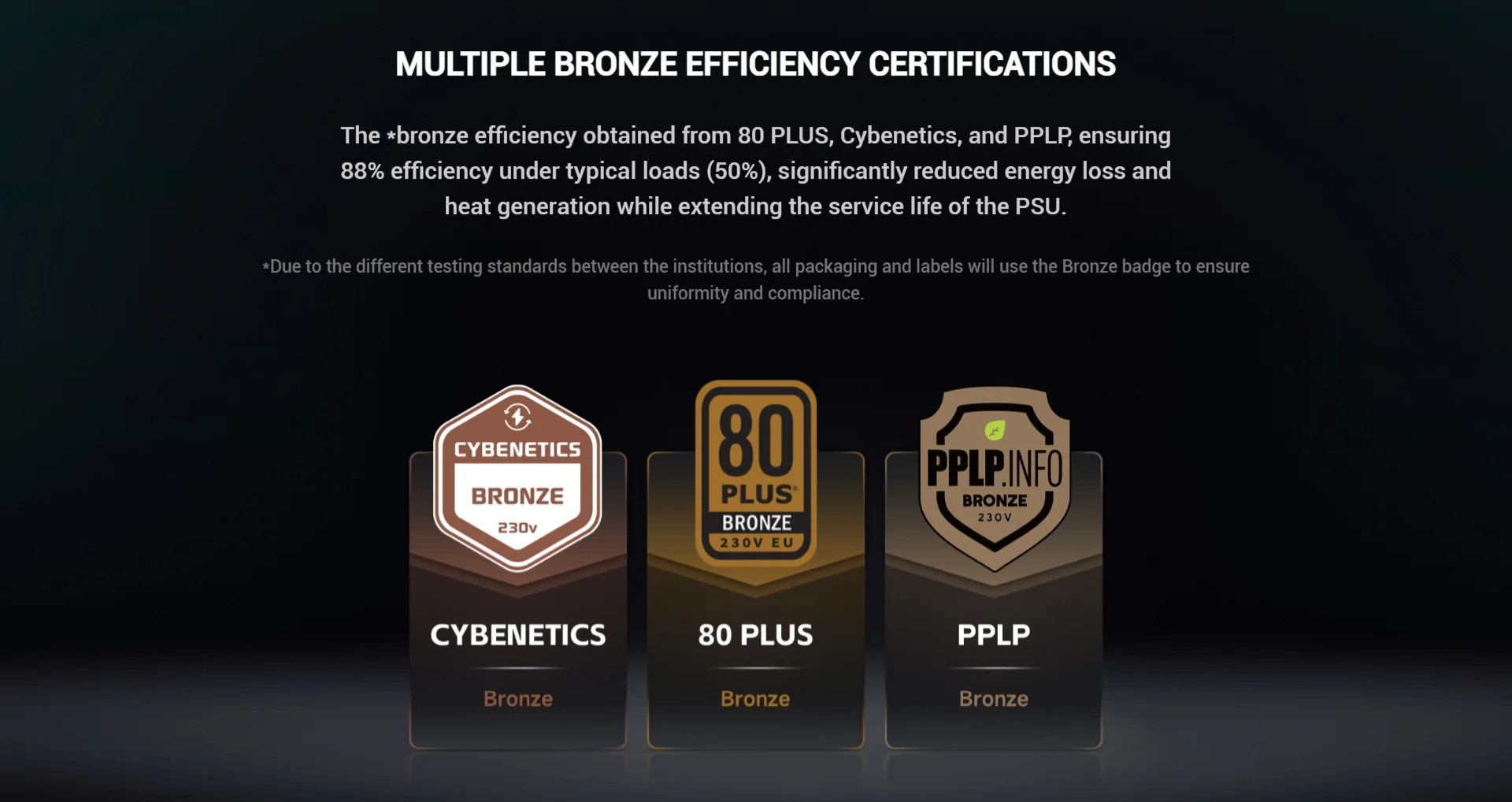 Efficiency certification: 80PLUS 230 EU Bronze/CYBENETICS Bronze /CYBENETICS A 230V/PPLP 230V Bronze