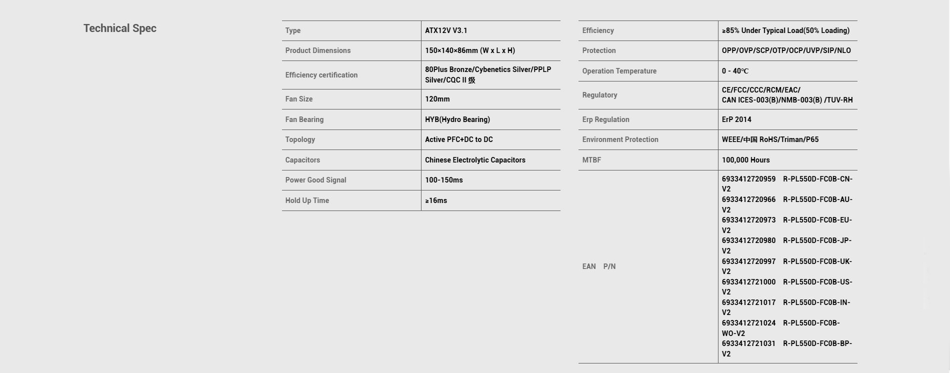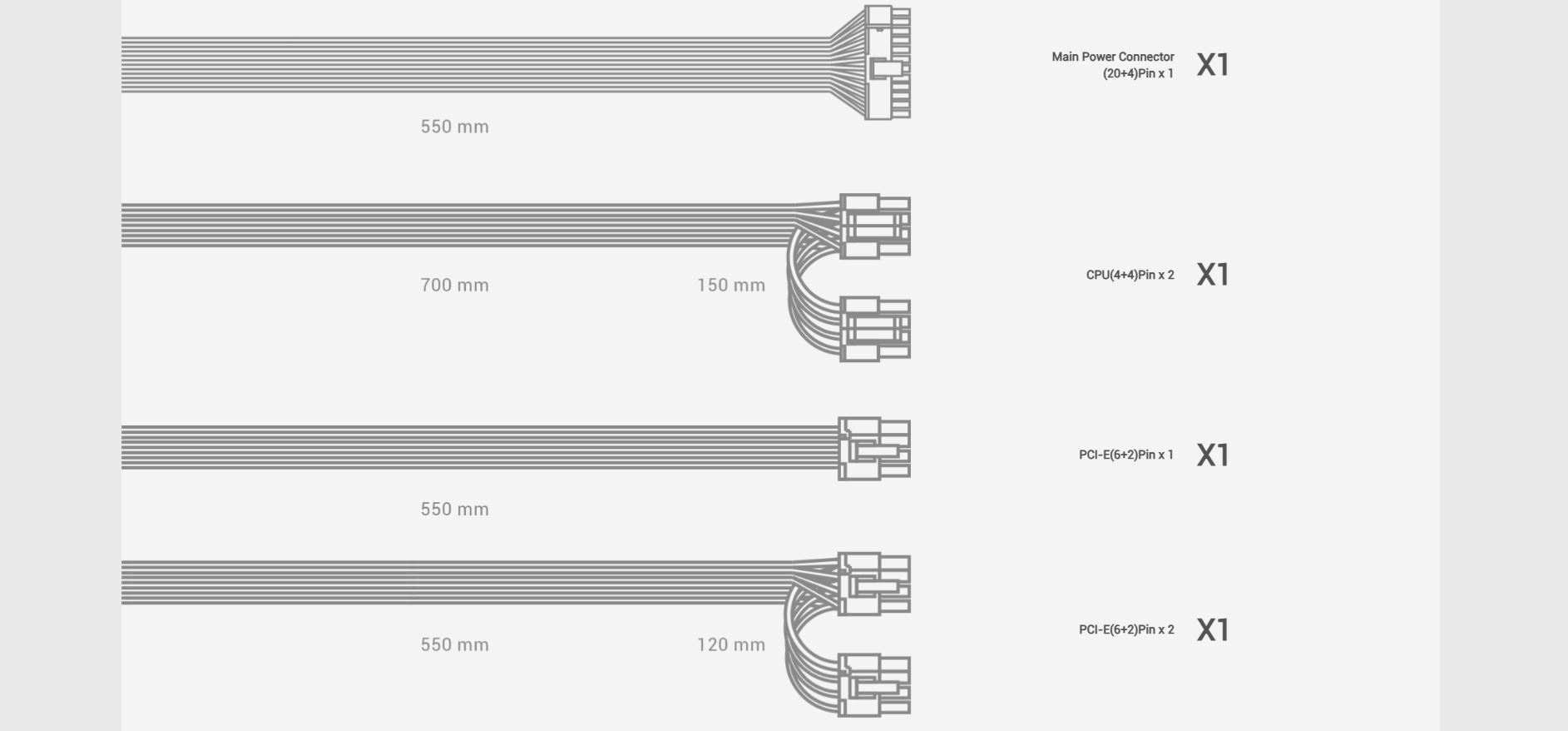 * Efficiency Certification: 80Plus Bronze/Cybenetics Silver/PPLP Silver/CQC II