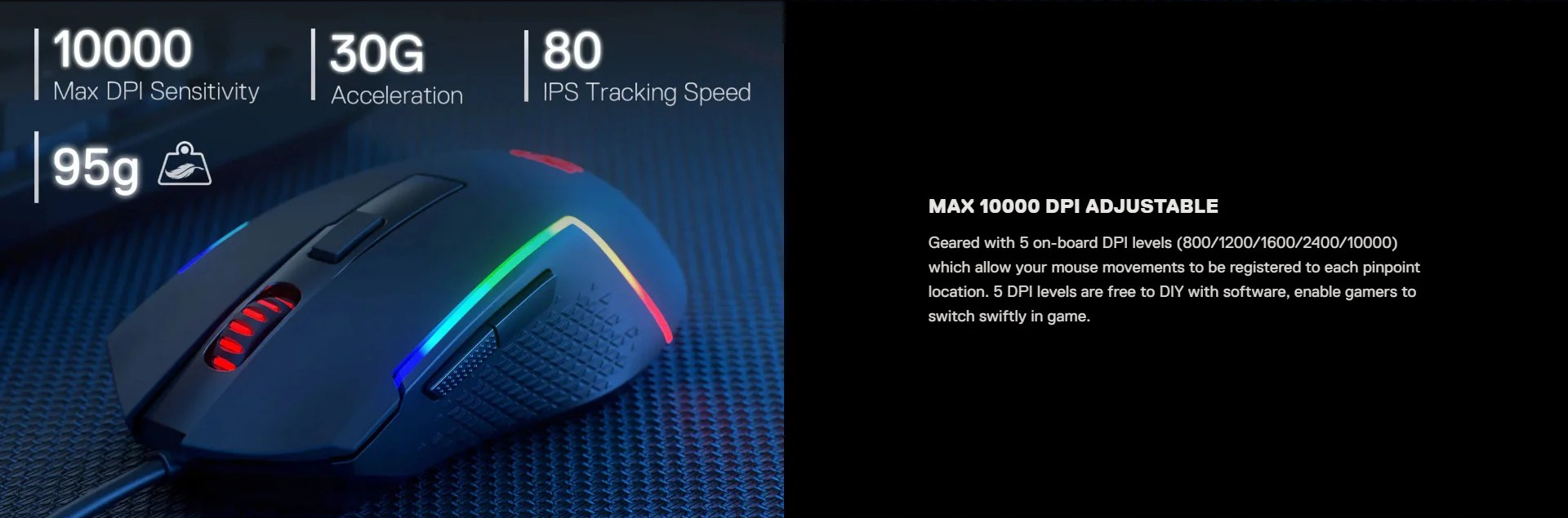 DPI: 5 onboard DPI levels (800/1200/1600/2400/10000)