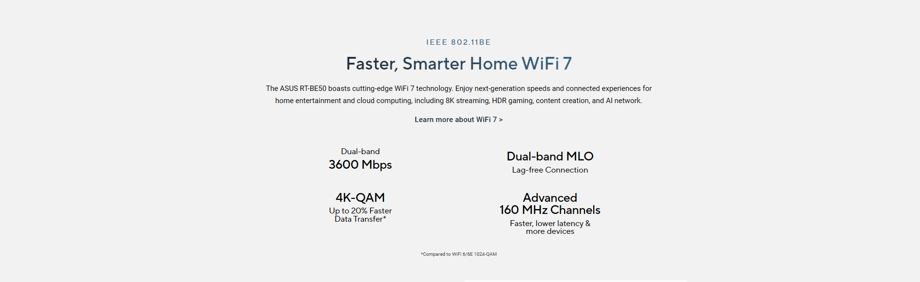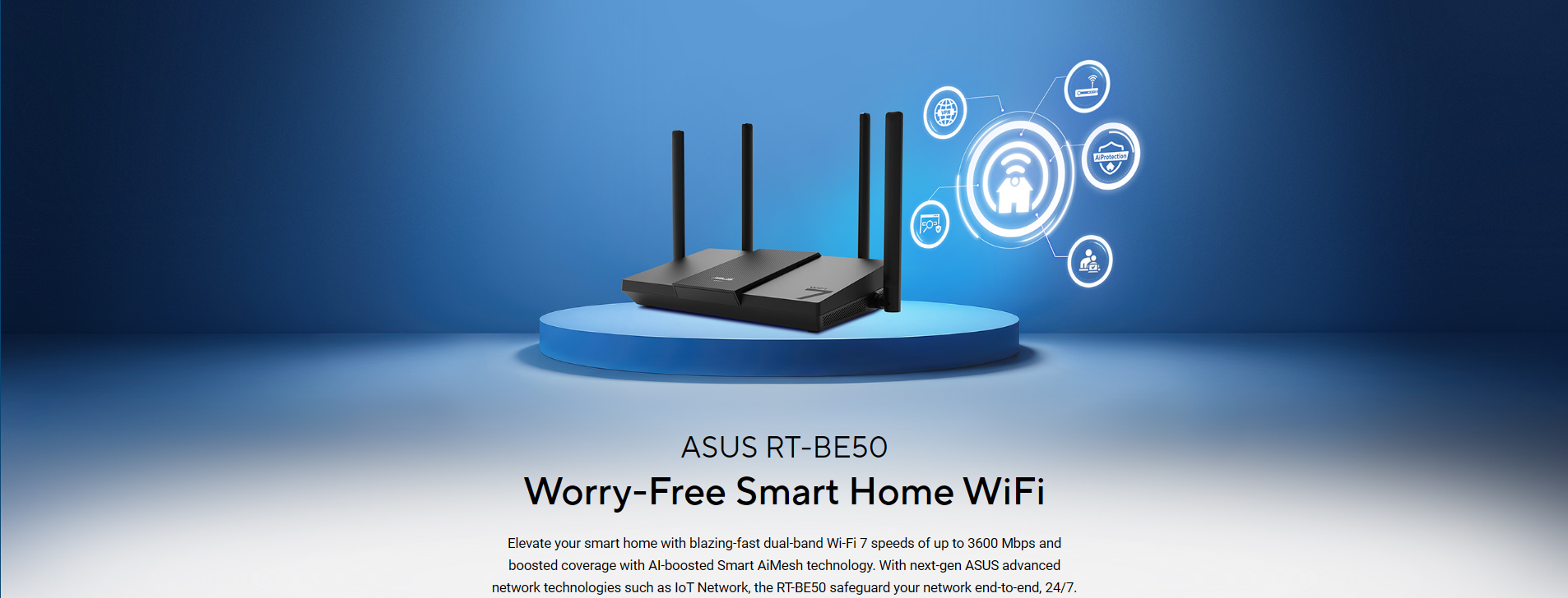 ASUS RT-BE50 WiFi 7 BE3600 Dual-Band Smart Home Wireless Router