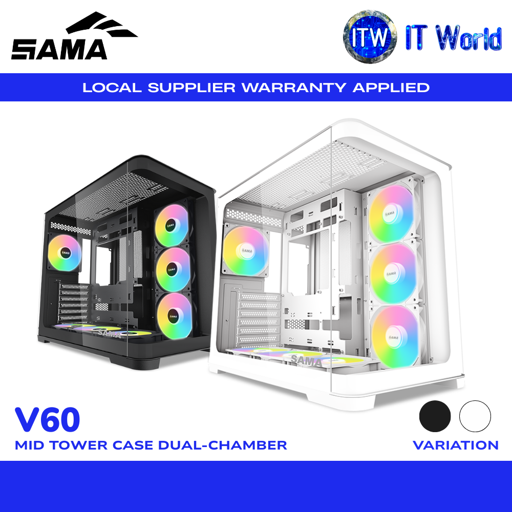 SAMA V60 Mid Tower Case | ATX / Dual-Chamber / 10× ARGB Fans / USB-C| itw