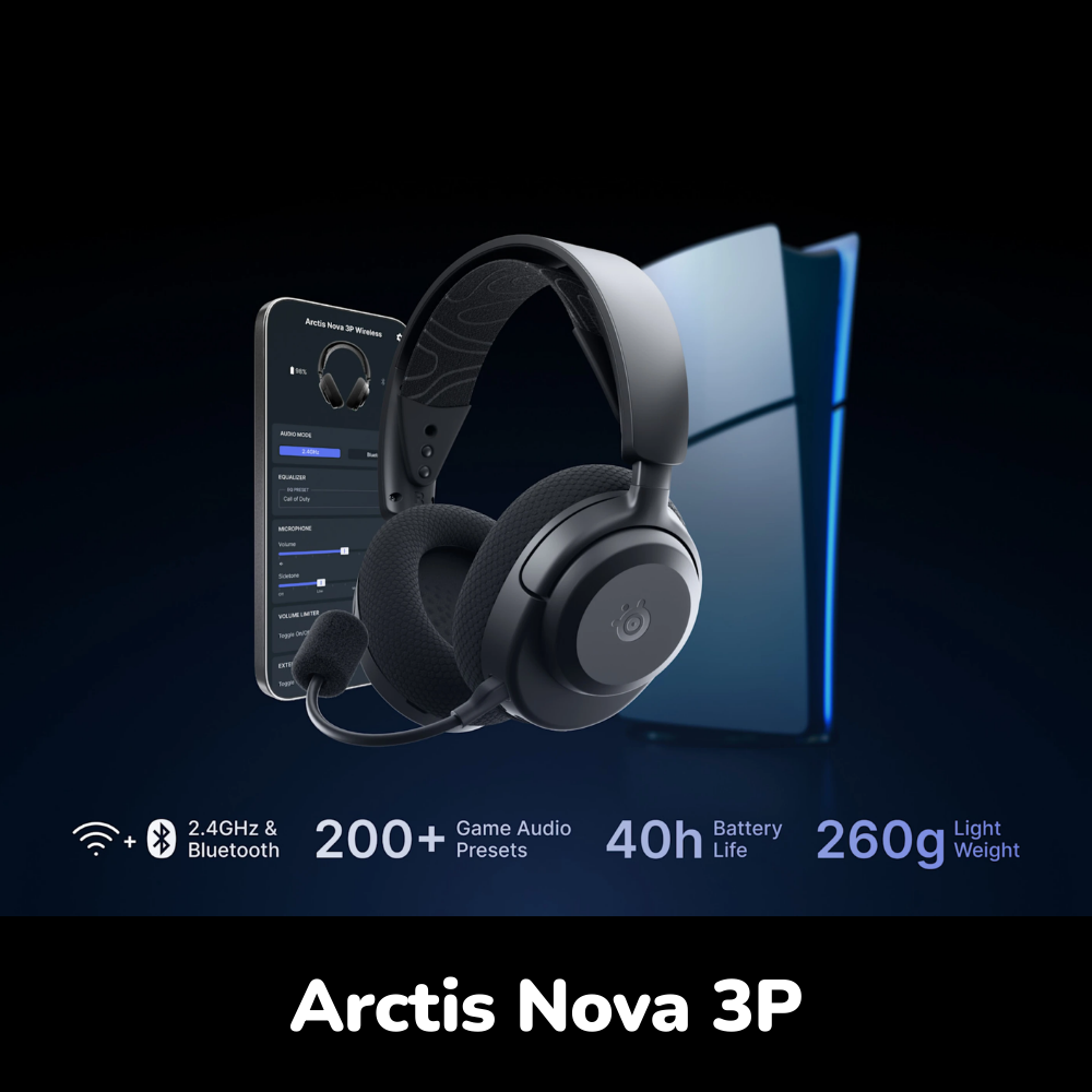 Experience unbeatable sound and comfort with the SteelSeries Arctis Nova 3P, designed for PlayStation but built to work seamlessly across PC, Switch, Mac, VR, and mobile. With quick-switch Bluetooth, game presets, and ultra-fast charging, you’ll stay in the action longer than ever.