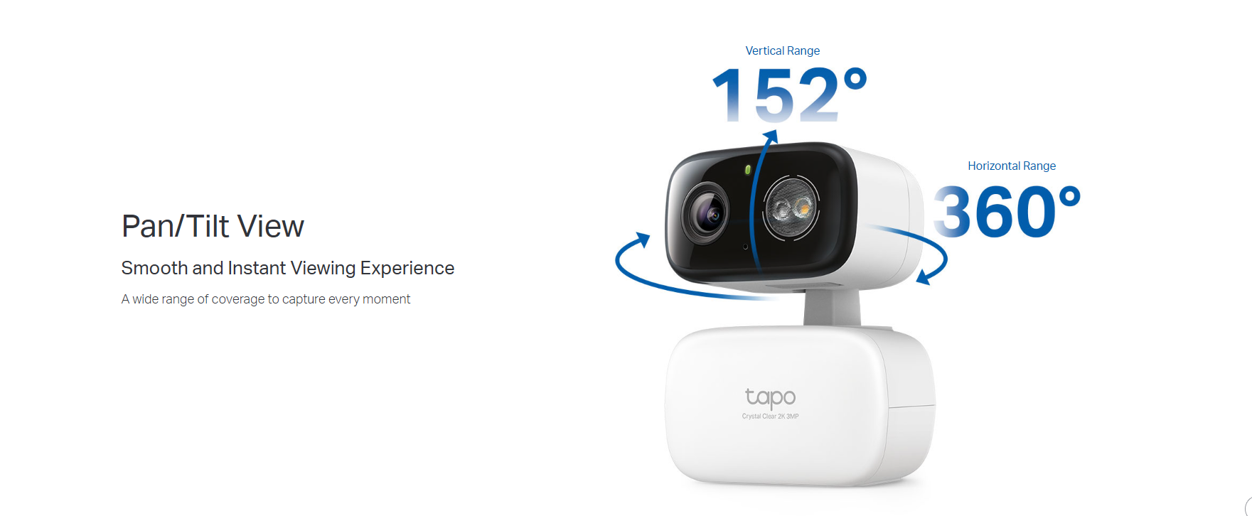 Pan & Tilt View: 360º horizontal and 152º vertical coverage eliminates blind spots
