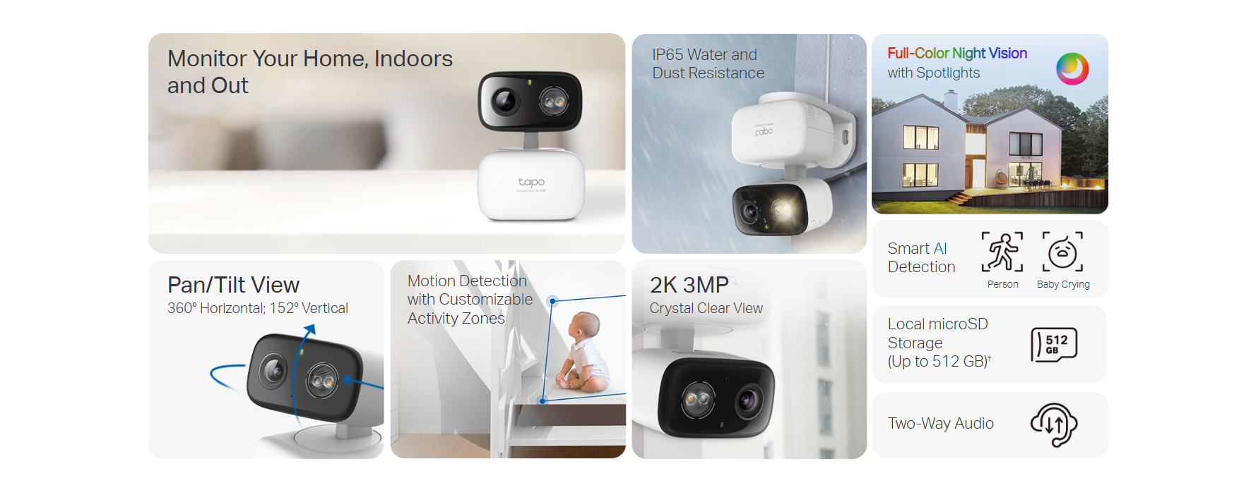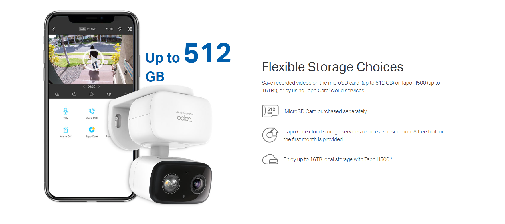 Flexible Storage Options: Supports up to 512GB microSD or Tapo Care cloud service