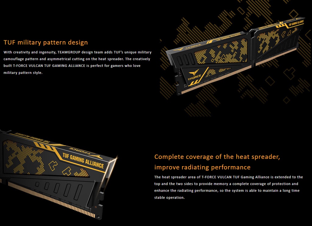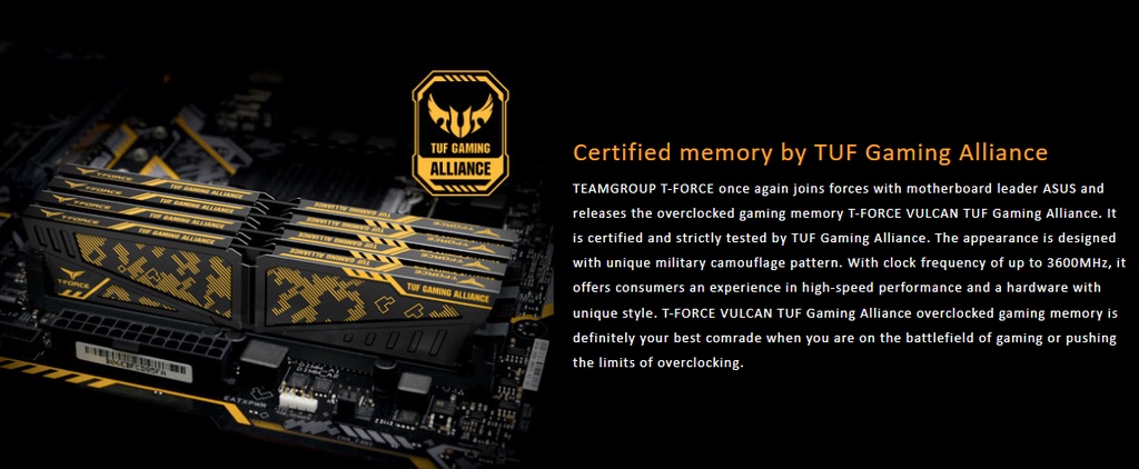 Team T-Force Vulcan TUF Gaming Alliance DDR4 RAM 16GB 2x8GB 3600MHz Desktop TLTYD416G3600HC18JDC01