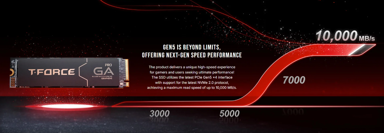 TeamGroup T-Force GA Pro M.2 PCIe Gen5 NVMe SSD 1TB | 10,000MB/s Read / Graphene Heat Sink | itw