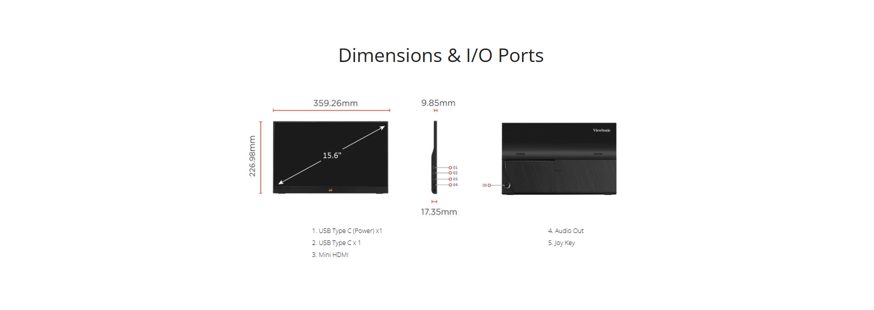 ViewSonic VA1655-3 | 16” FHD / USB-C / Portable Lightweight Monitor | itw