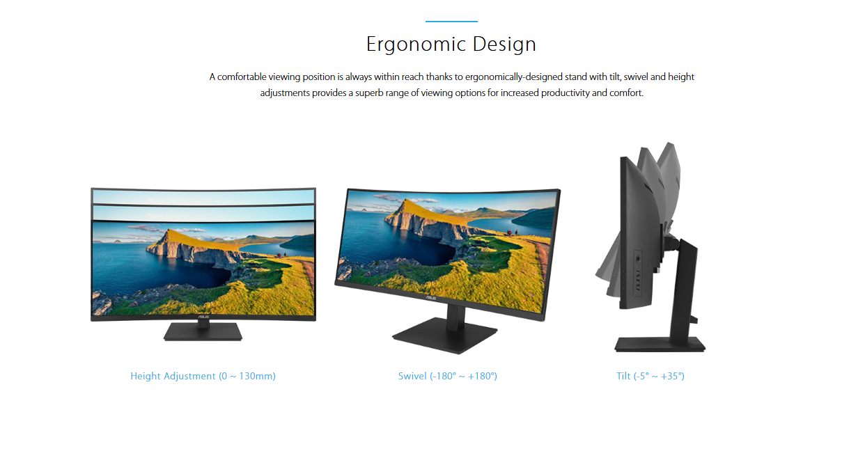 *ASUS VA34VCPSR Docking Monitor – 34 inch, WQHD (3440x1440), 1500R Curvature, Frameless, USB-C PD 96W, RJ45, USB hub, Low Blue Light, Flicker Free, Ergonomic Design, Wall Mountable, Green Sustainability