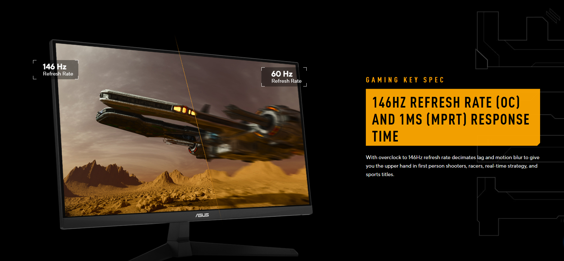 ⚡ 146Hz (OC) Refresh Rate + 1ms MPRT – ultra-smooth motion clarity
