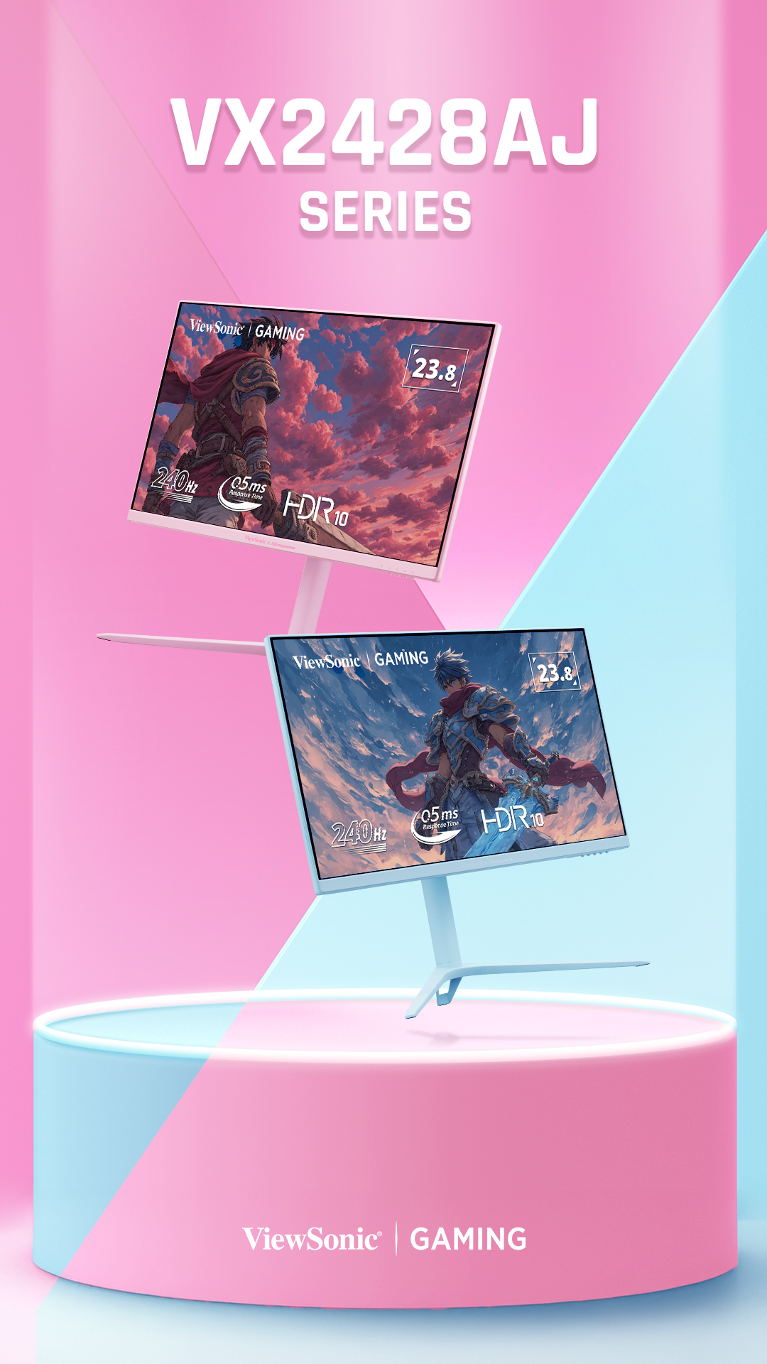 Level up your gaming setup with the ViewSonic VX2428AJ Series – available in 💙 Blue (VX2428AJ-BL) and 🌸 Pink (VX2428AJ-PK). This 24-inch Fast IPS monitor delivers pro-level performance with lightning-fast 240Hz refresh rate, 0.5ms response time, and AMD FreeSync™ Premium for tear-free, buttery-smooth action. Its HDR10 technology enhances color and contrast, while the ergonomic stand keeps you comfortable during long gaming marathons. Perfect for competitive gamers and stylish setups alike!