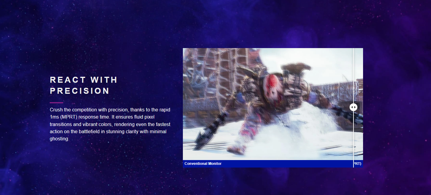 🎯 1ms (MPRT) Response Time – Obliterate motion blur and ghosting.